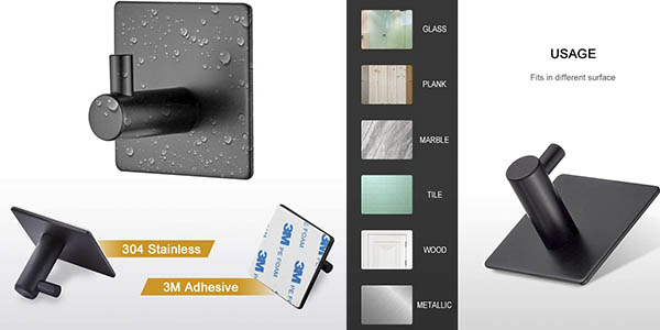 Hablamos del pack x4 ganchos Ibergrif MK34251A, hechos en acero inoxidable y con fuerte adhesivo 3M, que ahora puedes comprar por sólo 4,61€, lo que supone un 34% de descuento sobre su PVP. ¡Corre! 😉