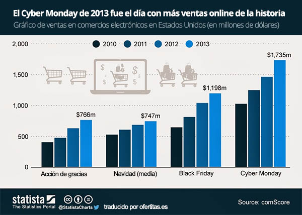 A priori puede parecer que para asegurarte un chollo en el Black Friday, lo mejor es ir corriendo a la tienda el mismo día que empiezan las promociones, y ser de l@s primer@s en entrar como elefante en cacharrería. Craso error. Esto no son las rebajas de enero. En el Black Friday español casi todas ofertas están relacionadas con la electrónica y se pueden comprar por Internet desde la medianoche del día señalado.