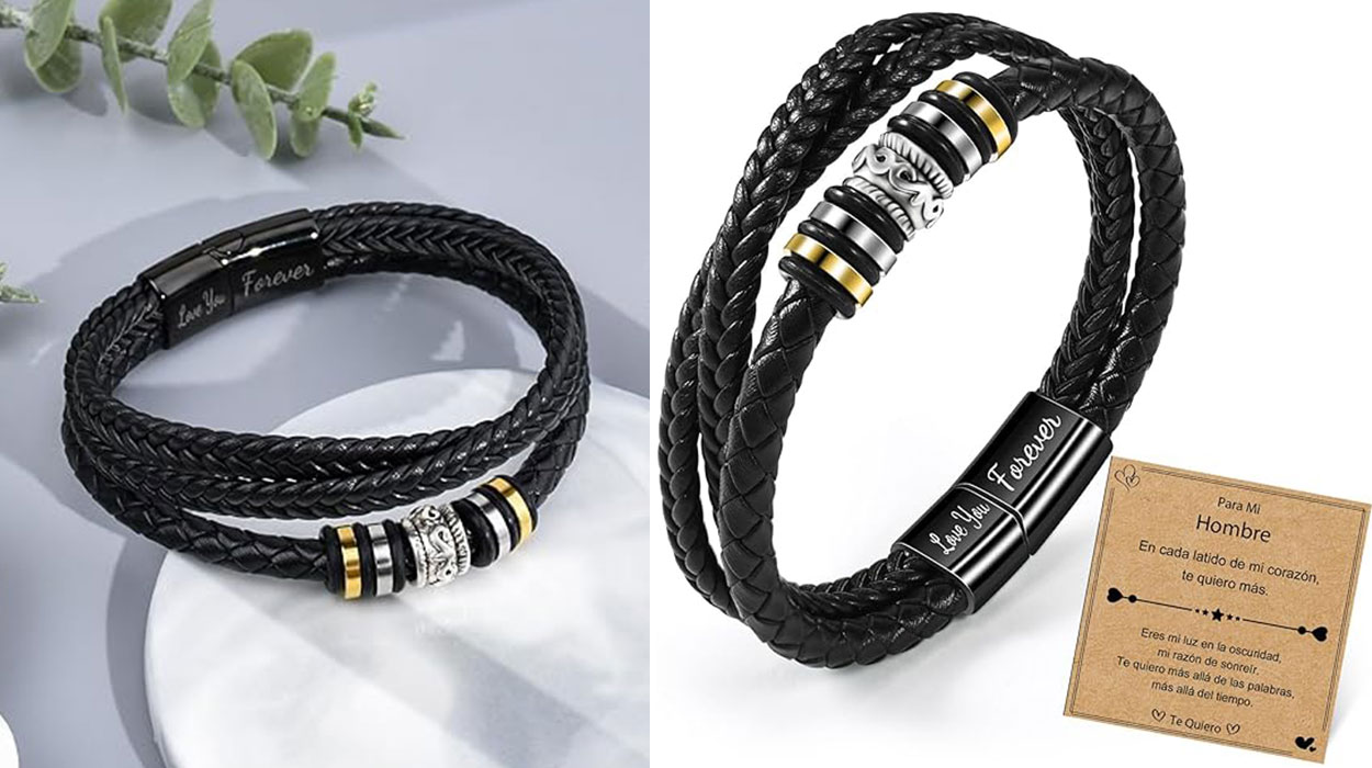 ¡Sorprende a esa persona especial con un regalo que hable de tus sentimientos con esta pulsera Yeluwa de acero y cuero trenzado para hombre que tienes a tan solo 13,59€ en Amazon!