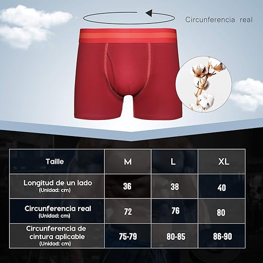 El pack incluye cuatro pares de bóxers en colores diferentes: 2 negros, 2 azules, 2 grises y 2 rojos, para que no te aburras de llevar siempre el mismo tono. Todos cuentan con diseño anatómico 3D con tela doble, que ofrece buena sujeción, permiten una total transpirabilidad y son muy cómodos.