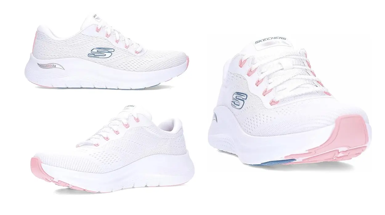 Hazte con las Skechers Arch Fit 2.0 - Big League en blanco y rosa por 49,95€ con envío gratis en Amazon desde este enlace y aprovecha el 50% de descuento antes de que vuelen las tallas más demandadas.