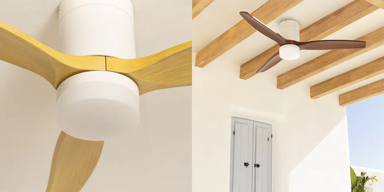 El ventilador Create WINDCALM PATIO DC está diseñado para su uso tanto en exteriores como en interiores. Gracias a su protección IP44, puede instalarse en terrazas, balcones, porches o incluso en habitaciones de entre 13m² y 25m². Sus aspas están fabricadas en ABS, un material resistente que imita la madera, y su motor de cobre DC sin escobillas es más eficiente y silencioso que los convencionales.