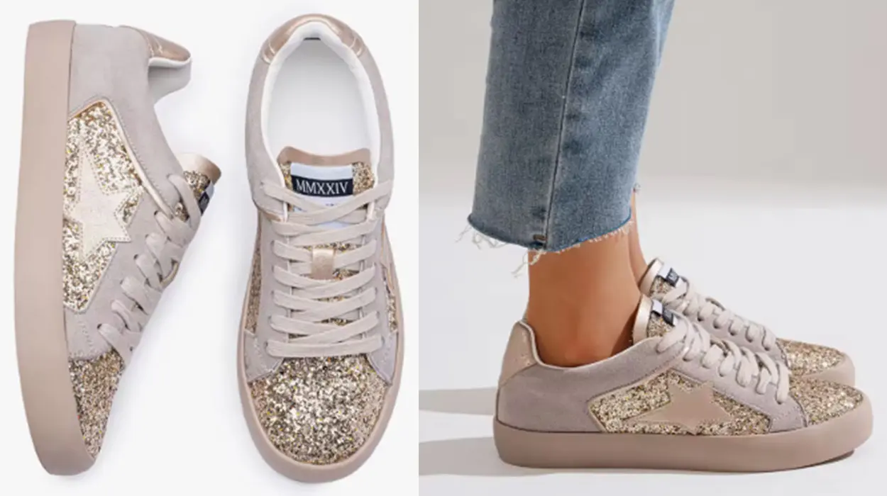 Brillar nunca pasa de moda, y puedes hacerlo al mejor precio con estas zapatillas deportivas con estampado de purpurina para mujer, ¡que están ahora en dorado en Miravia a tan solo 21,46€ con envío gratis!